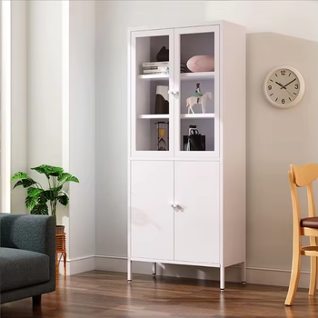 Gabinete de almacenamiento de metal Gabinete de exhibición de acero con estantes ajustables Librería de metal con puerta de vidrio